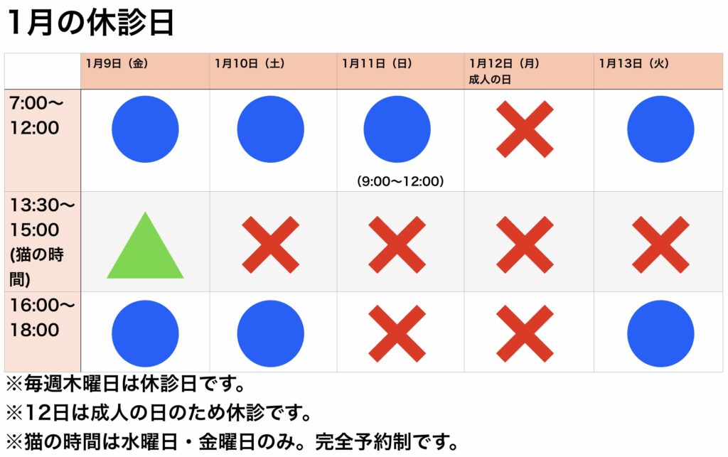 さて、これも毎年ですが、年明け最初の休診のお知らせです!