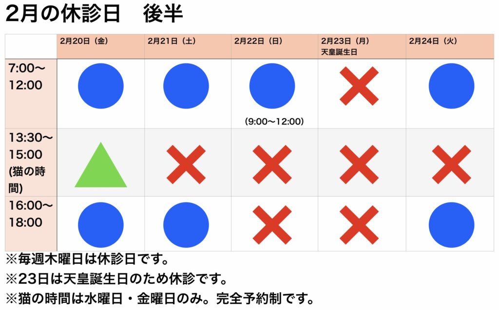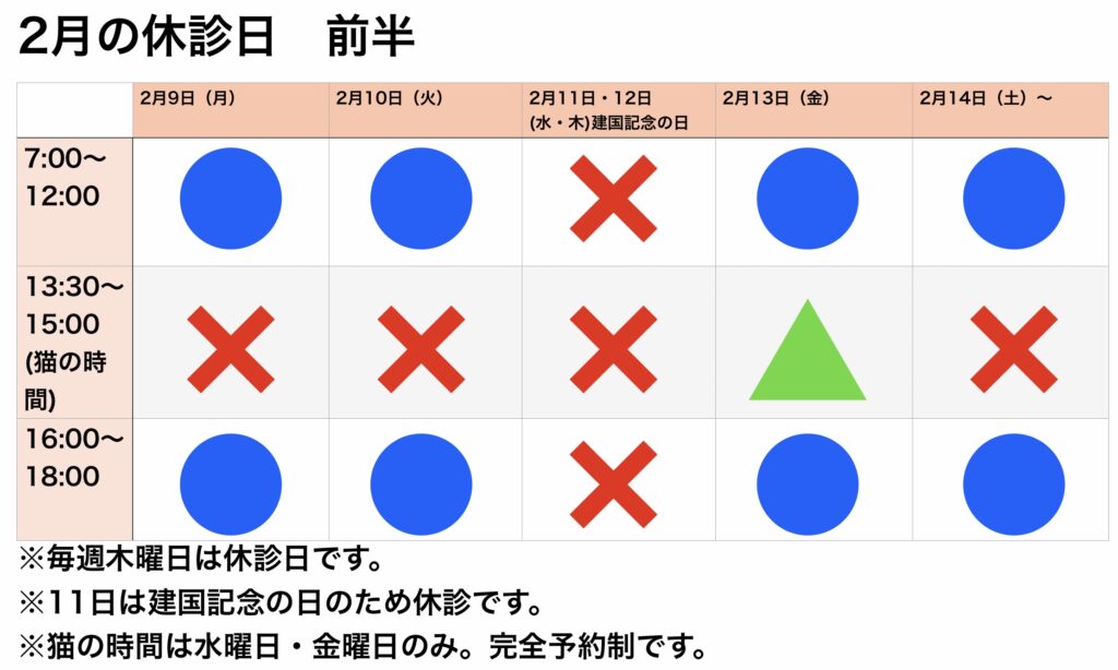 さて今回は、休診のお知らせ!2月は祝日が2回あります!